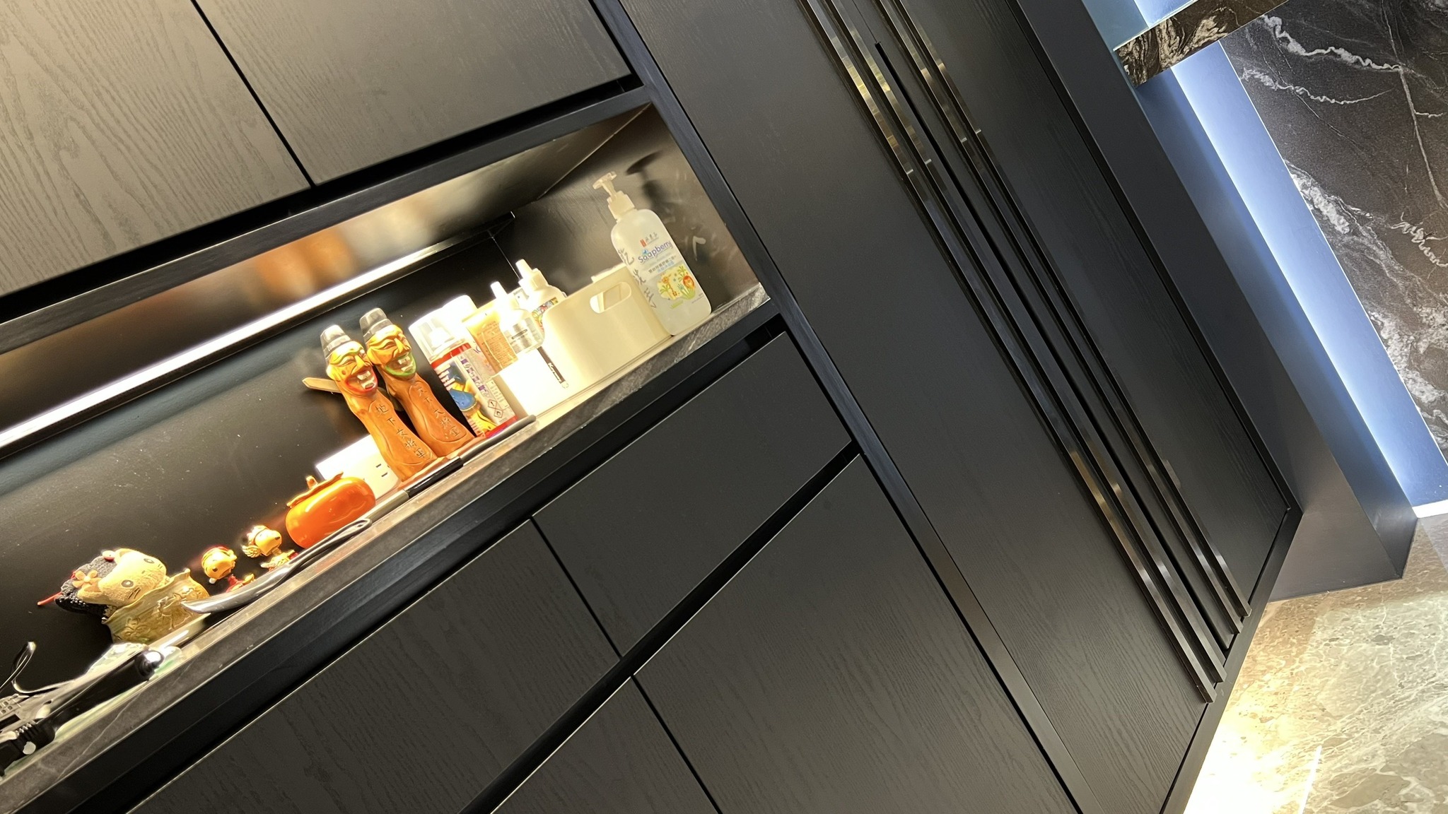施作項目:不鏽鋼面鞋櫃改黑木紋