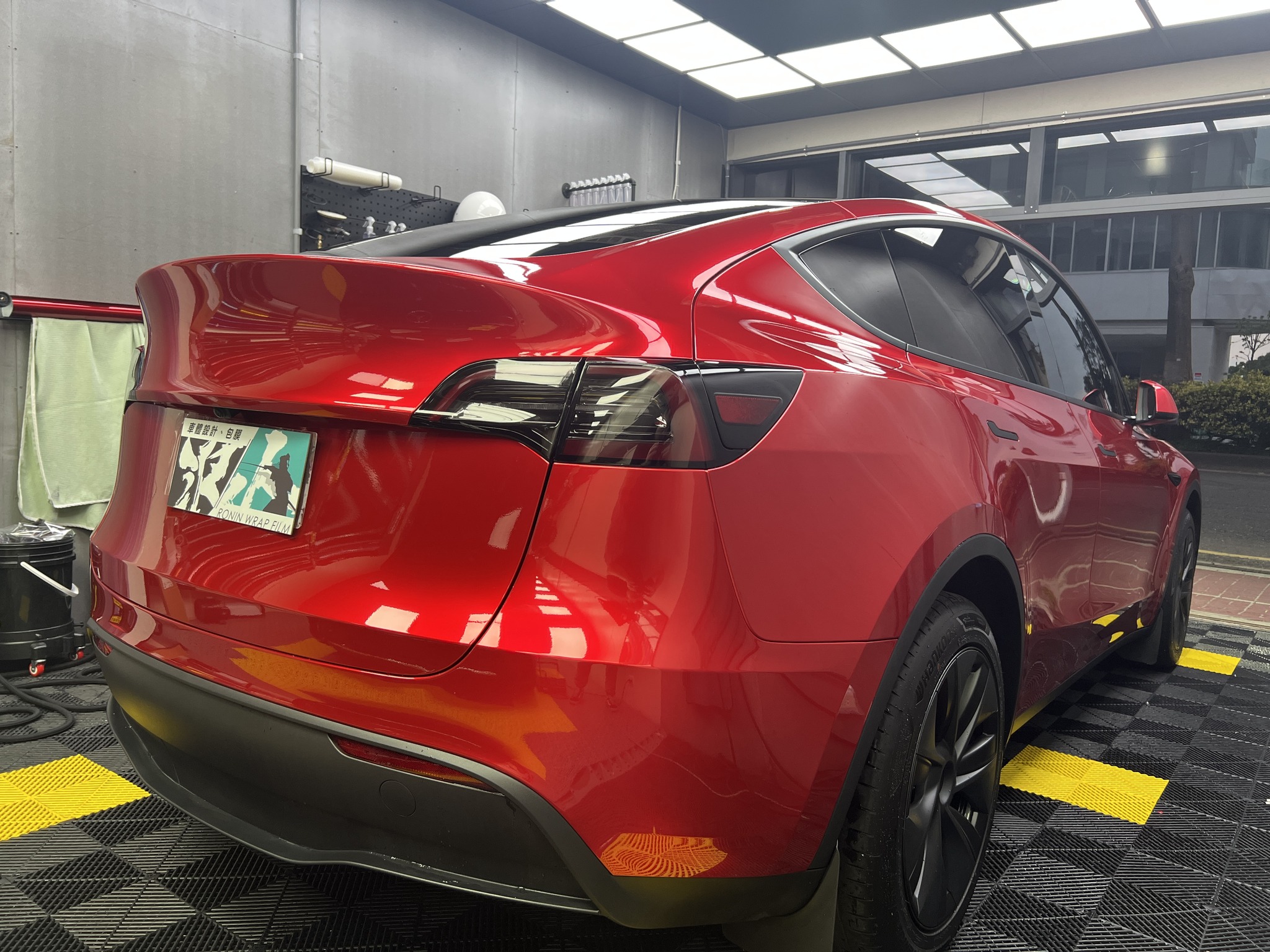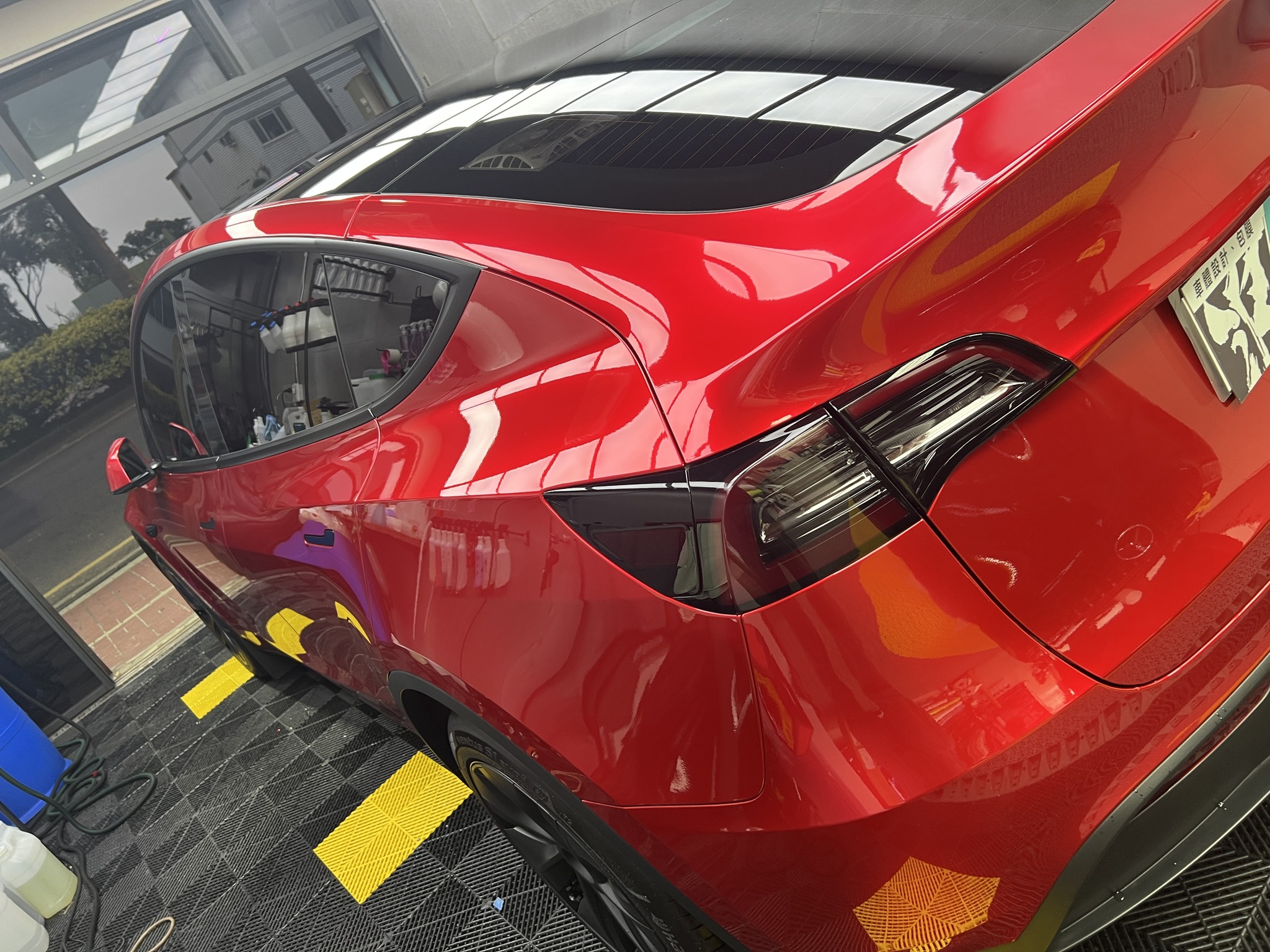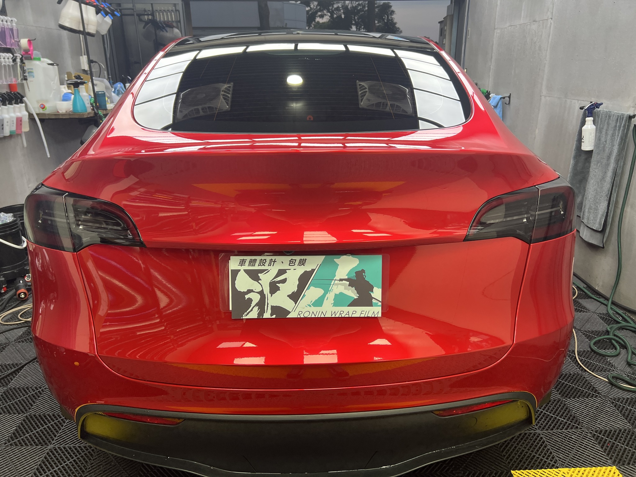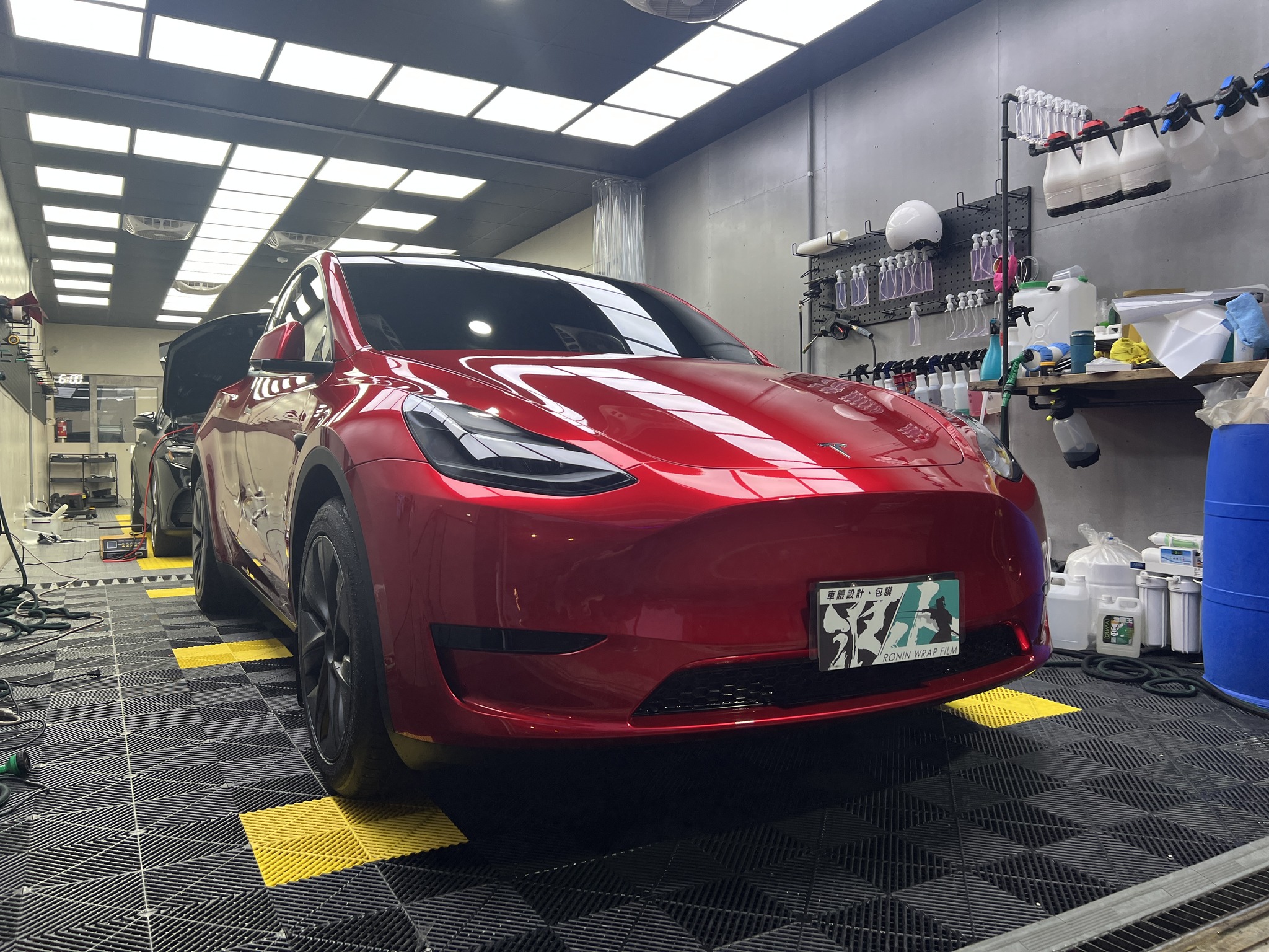 施作項目:Tesla model y全車改色液態金屬寶石紅