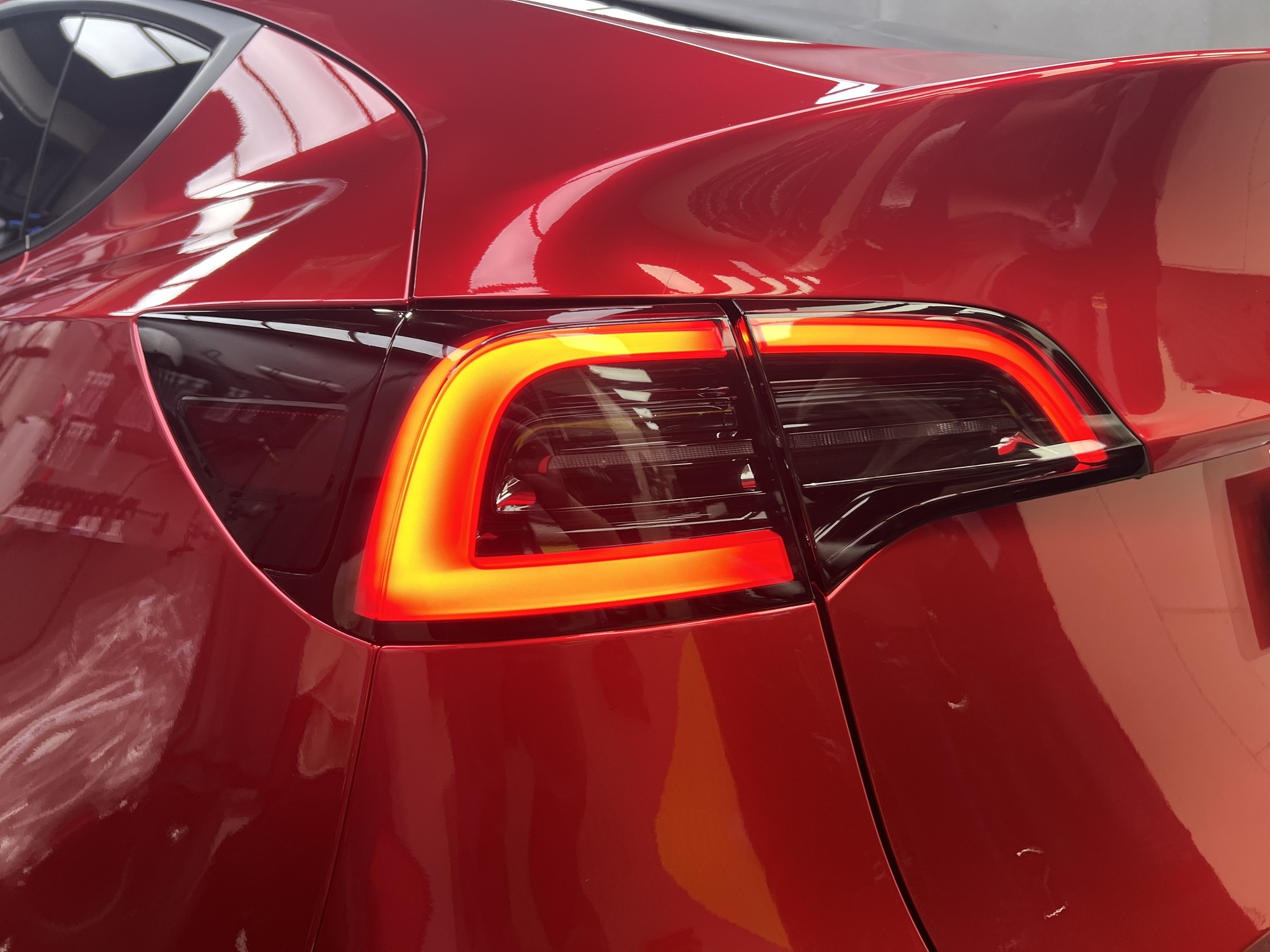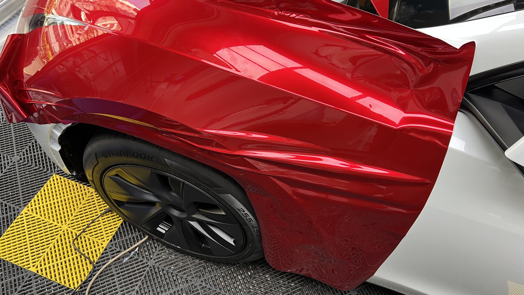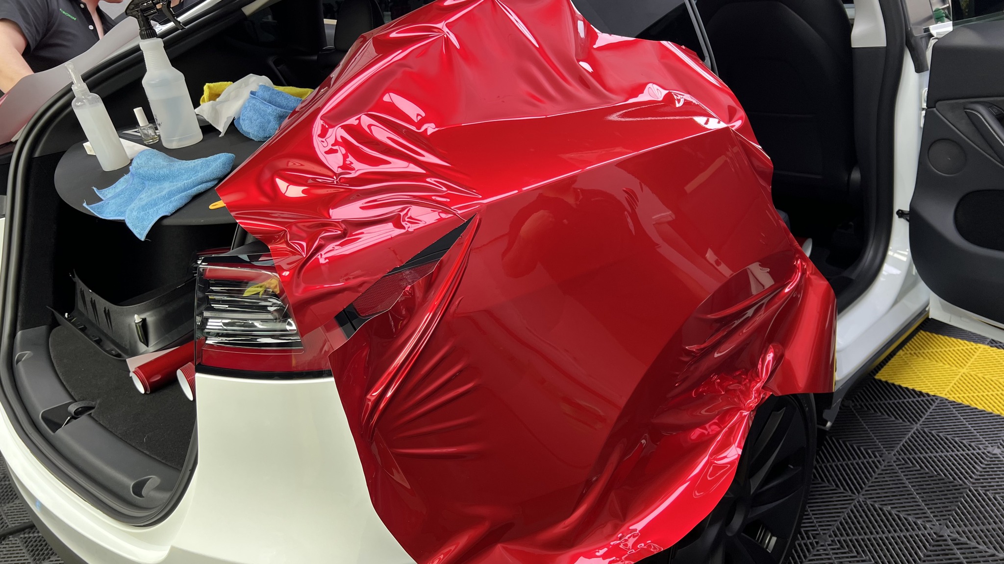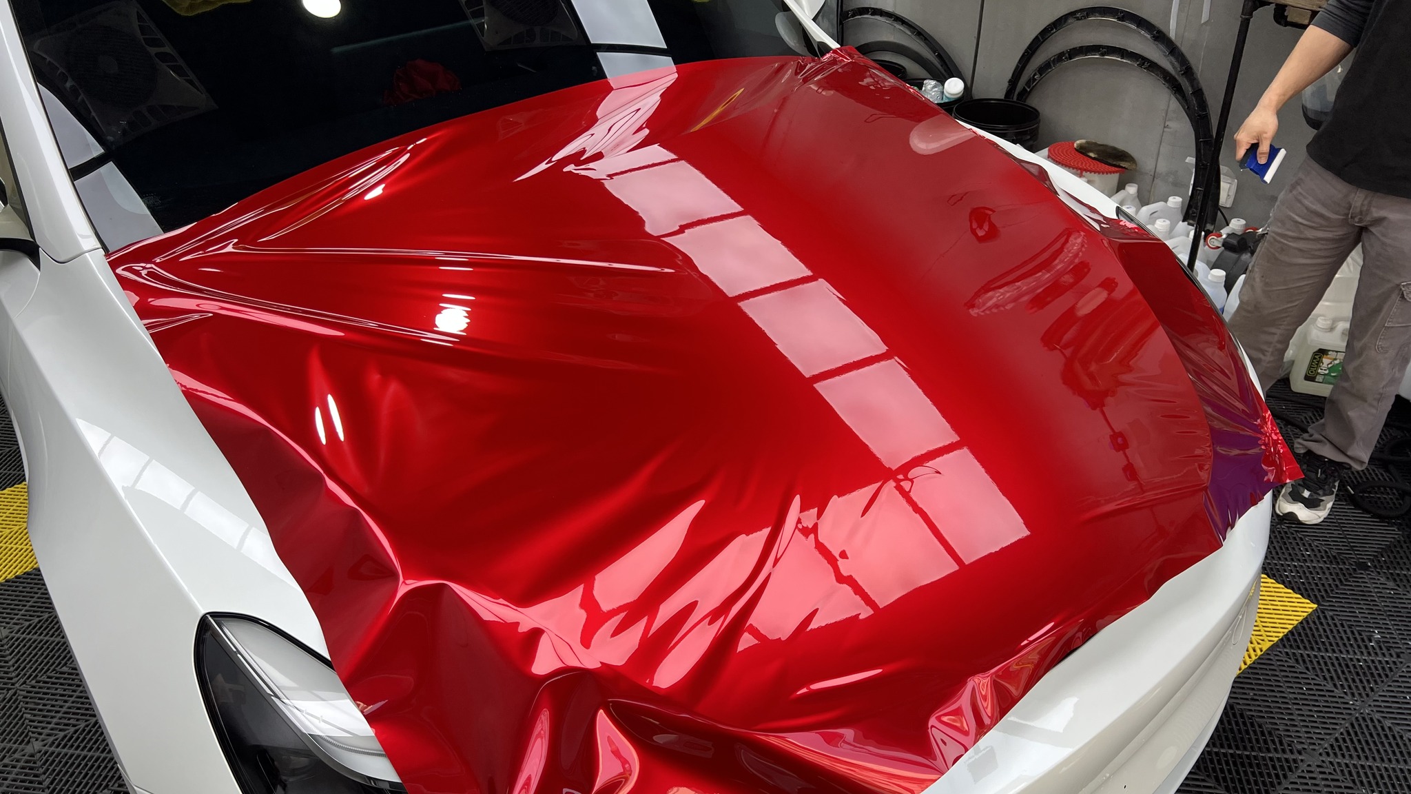 施作項目:Tesla model y全車改色液態金屬寶石紅