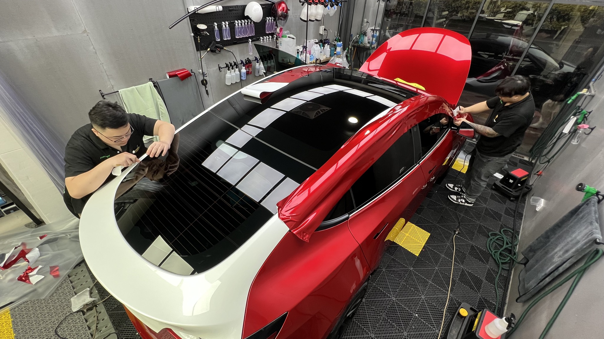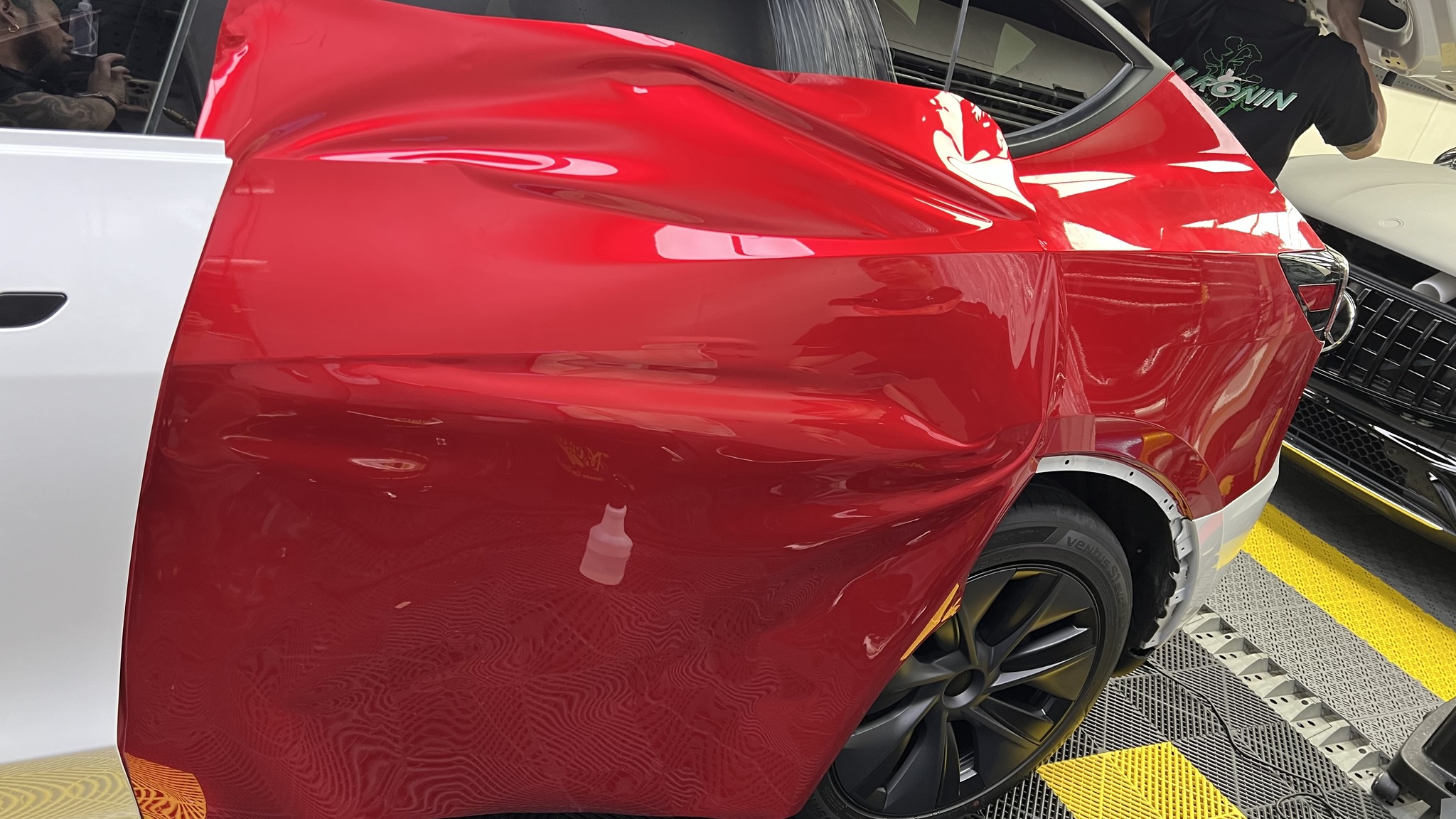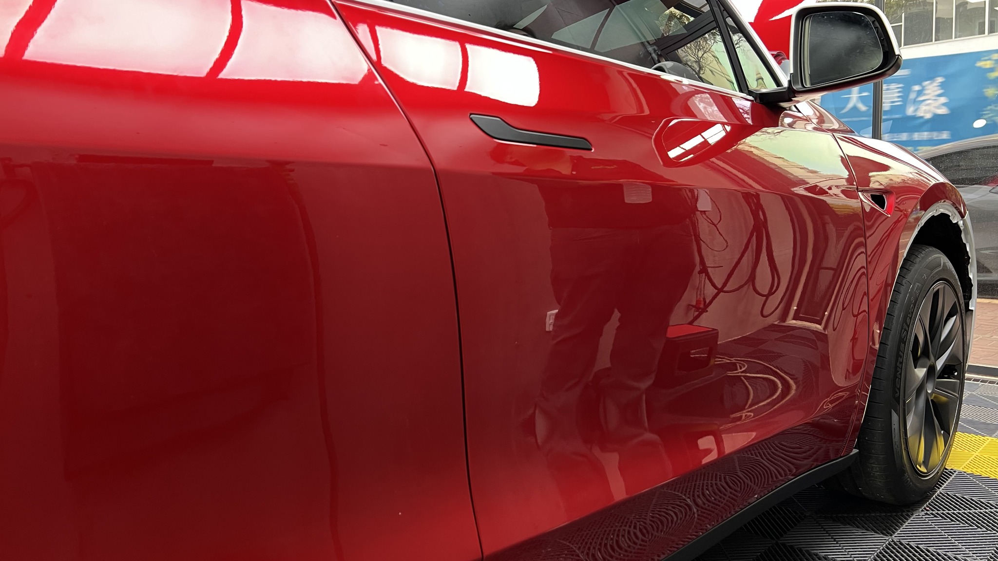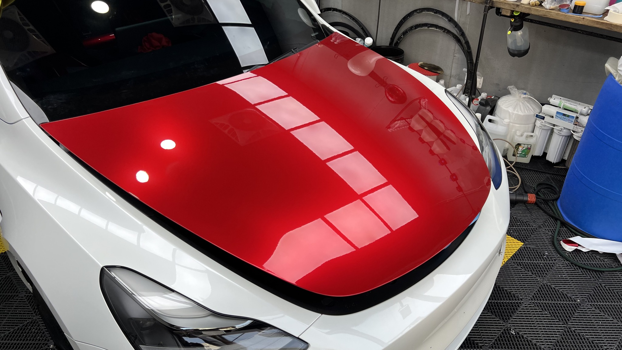 施作項目:Tesla model y全車改色液態金屬寶石紅